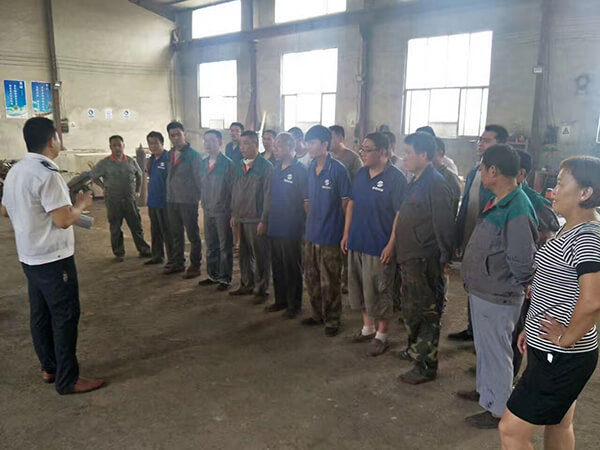 The following picture shows the safety production knowledge training for the installation workshop staff.