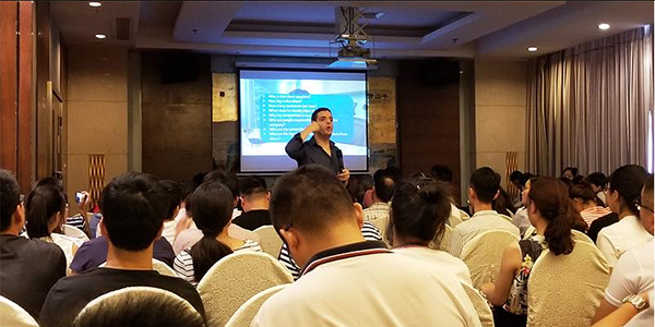 The picture below shows the sales team attending the Canadian trade expert Mr.Jam's training on sales skills.